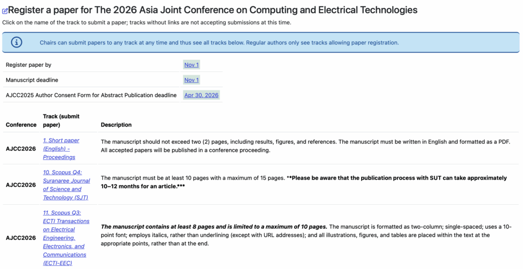 The submission of a full paper indicates that the full paper is original work, has not been published, submitted under review, or the content is not protected by copyright in other places. Additionally, experts in the field will review all full paper submissions based on the criteria of originality, significance, quality, and clarity. The regular papers should have 8-15 pages long.